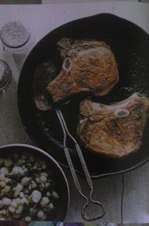 Doorbell Pork with Hominy and Greens. I subbed spinach for this but it turned out just as I imagined. My pork chops looked pretty much like the picture. This recipe is a prime example of how well written the recipes are and how simple they are to follow.